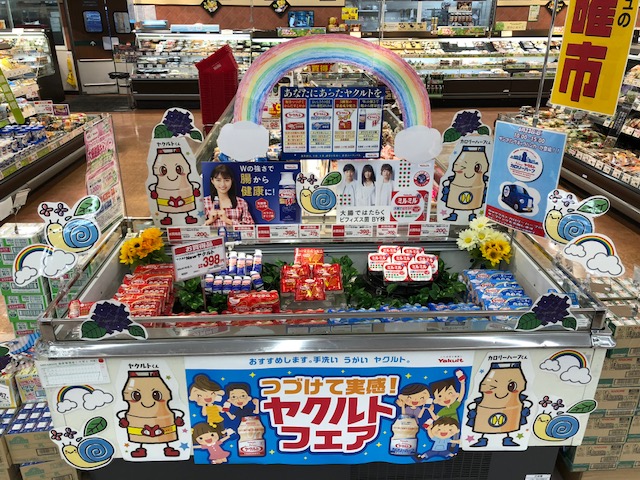 季節によっても飾りつけを変えるヤクルトの平台♬